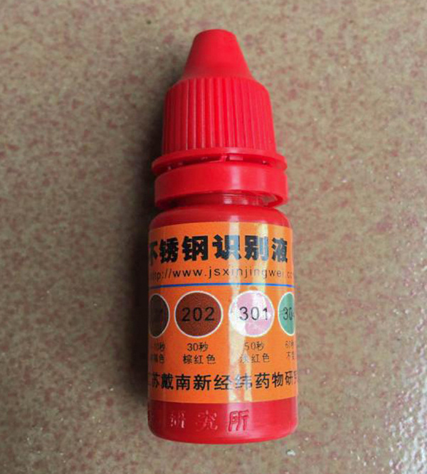 泫氏廠家對不銹鋼卡箍材質(zhì)采用光譜分析儀進(jìn)行檢測;用戶也可采用不銹鋼識別液進(jìn)行鑒定,這是一種通過識別卡箍材質(zhì)是否含鎳來判斷劣質(zhì)200系列卡箍和300系列卡箍的簡易方法,如圖所示。