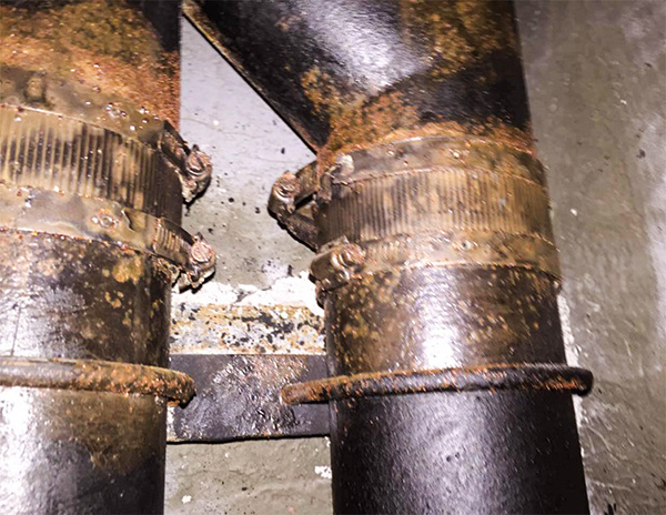 除了管材管件應(yīng)該符合國家標(biāo)準(zhǔn)以外,***重要的就是連接配件,市面上數(shù)不清的小廠卡箍以假亂真,用肉眼根本無法識別,如果黑心的商家選用了劣質(zhì)200系列材質(zhì)的卡箍后果不堪設(shè)想,不僅極易被腐蝕,而且容易斷裂。如上圖所示,僅僅使用了10個(gè)月的201材質(zhì)卡箍出現(xiàn)了腐蝕、斷裂的情況。